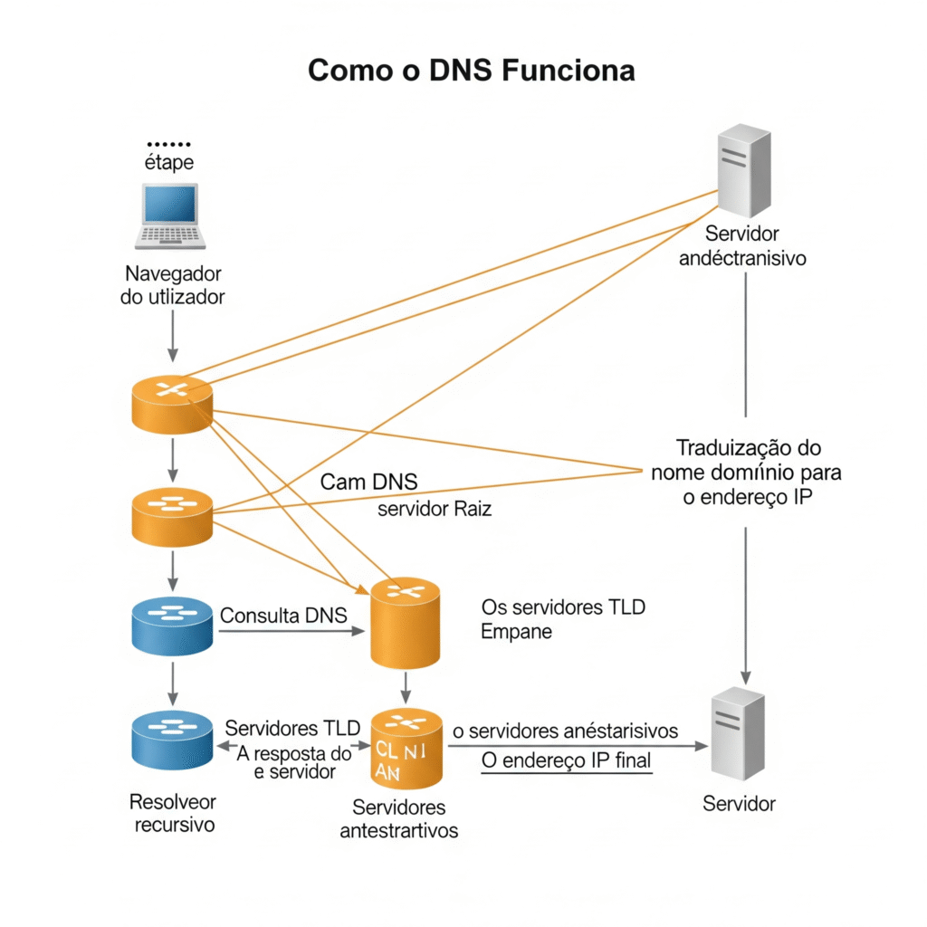 Já se perguntou como seu computador sabe onde encontrar um site na imensidão da internet? Em questão de segundos, você digita um endereço como www.google.com e boom! está lá. Isso acontece graças ao DNS (Domain Name System). Pense nele como a lista telefônica da internet: ele traduz nomes de domínio amigáveis que nós entendemos (como “google.com”) em endereços IP numéricos (como “172.217.160.142”), que são os endereços que os computadores realmente usam para se comunicar. Você não está “chamando o Google” diretamente pelo nome, mas sim usando o DNS para encontrar o endereço numérico do servidor que hospeda a página do Google. Tudo isso acontece tão rápido que você nem percebe!